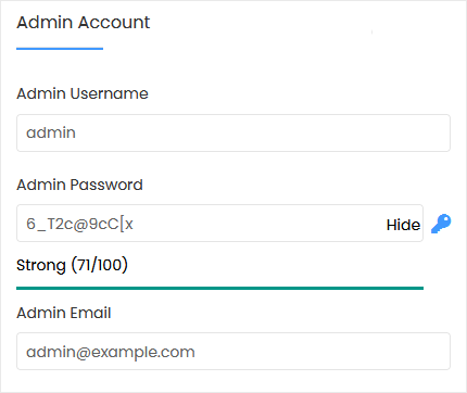 • Admin Username: Your new FlatPress username (for security reasons, do not use the administrator or the admin username).