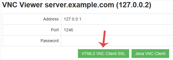 7. The new VNC page will open. Click on HTML5 VNC Client SSL or Java VNC Client.