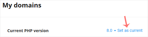 3. To the right side of the Current PHP version, click on the drop-down menu and choose the version you want to use.